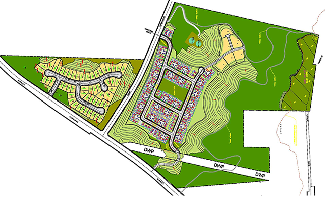 The ownership is bifurcated by Dockweiler Drive, with the south side of the property zoned for high density residential and the north side zoned for low density residential. PacificUS has applied to subdivide the south parcel for single family homes, a use compatible with the adjacent Lantana subdivision.