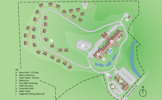 The project includes 44.5 acres of pristine land, including forest, meadows, and a blue line creek. The project has direct access and visibility from Highway 41, which leads directly to Yosemite National Park. PacificUS obtained an EIR, zone change, conditional use permit, planned use permit, and both general and specific plan amendments.